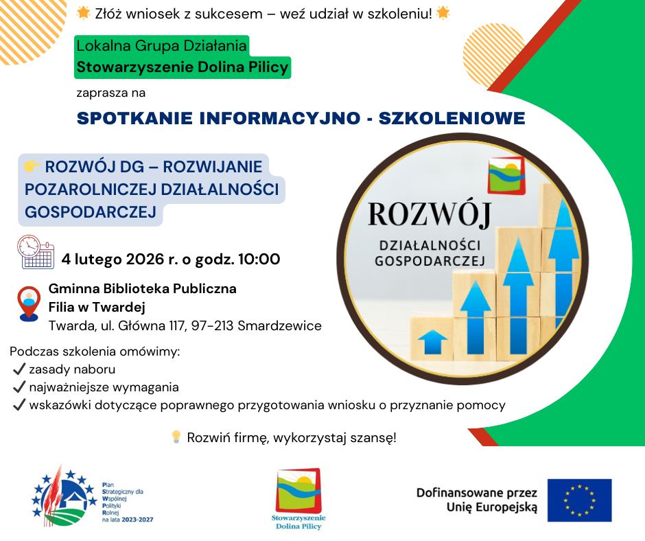 Zapraszamy na spotkanie informacyjno-szkoleniowe dotyczące zasad przyznawania pomocy w ramach działania: