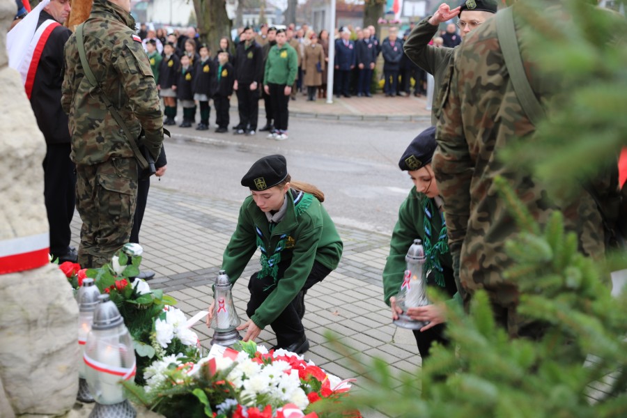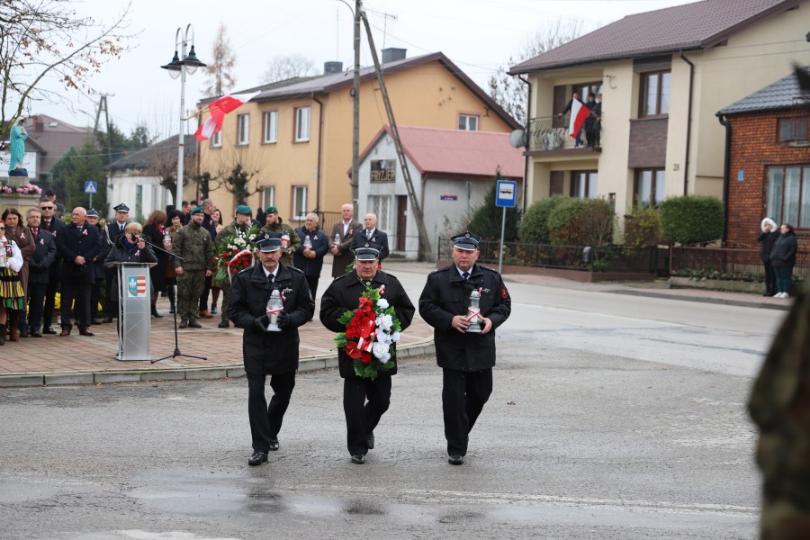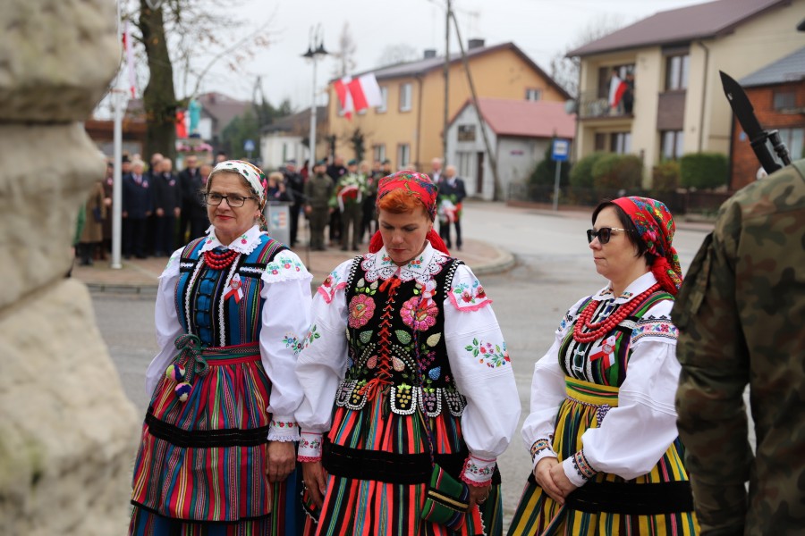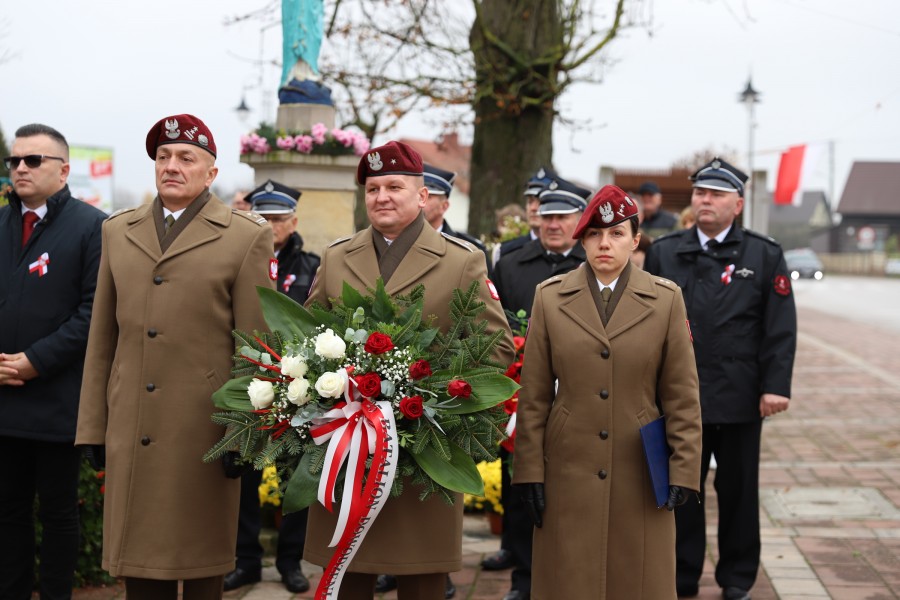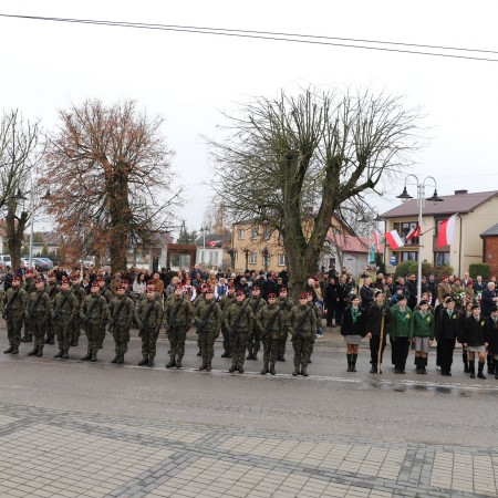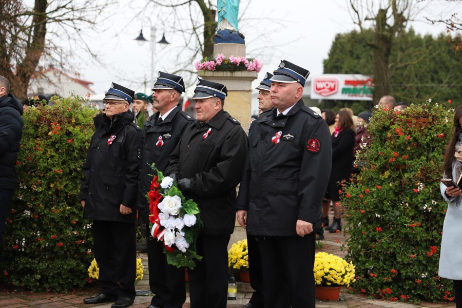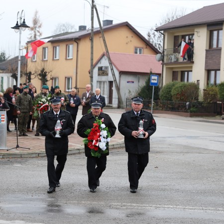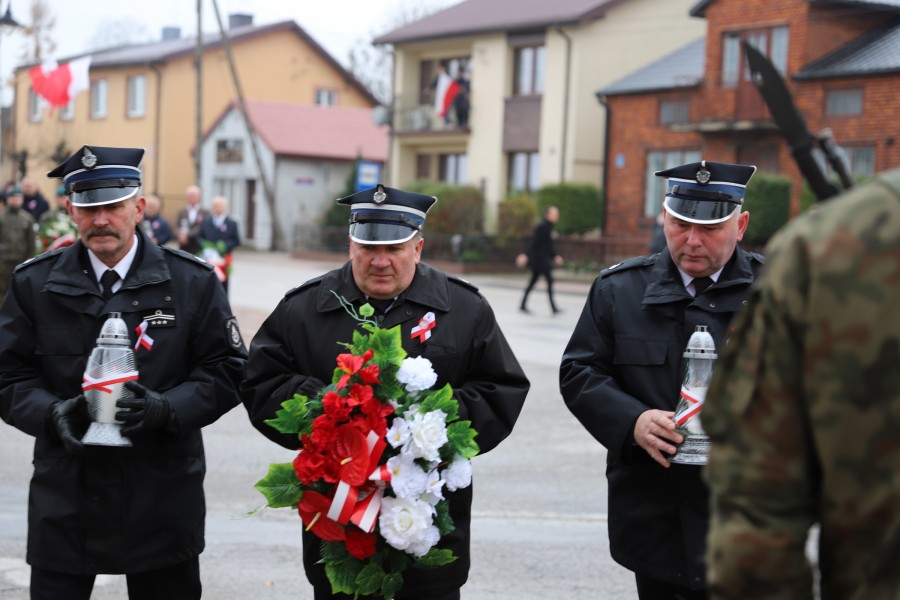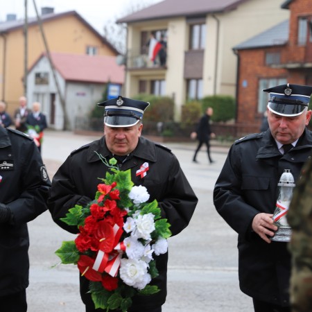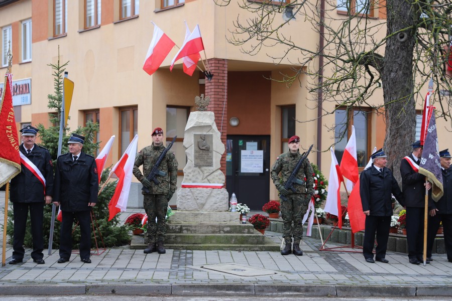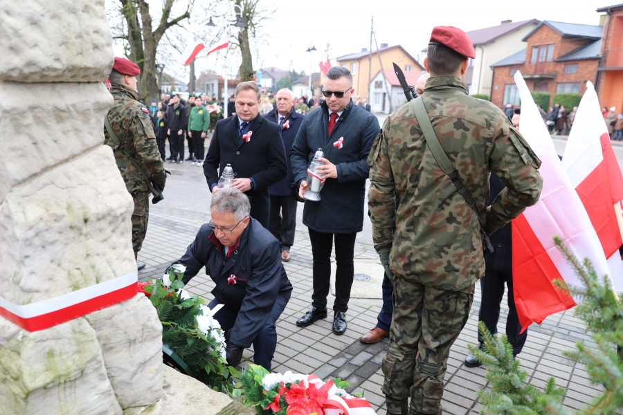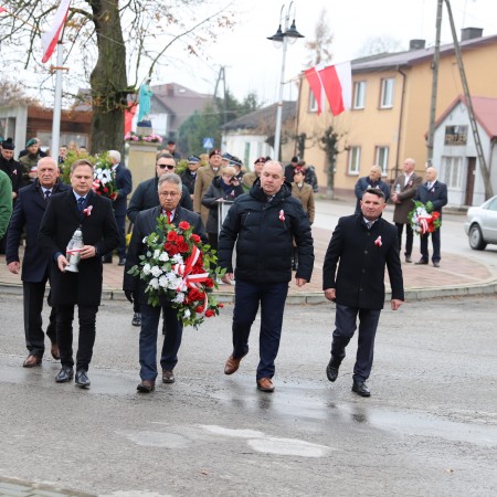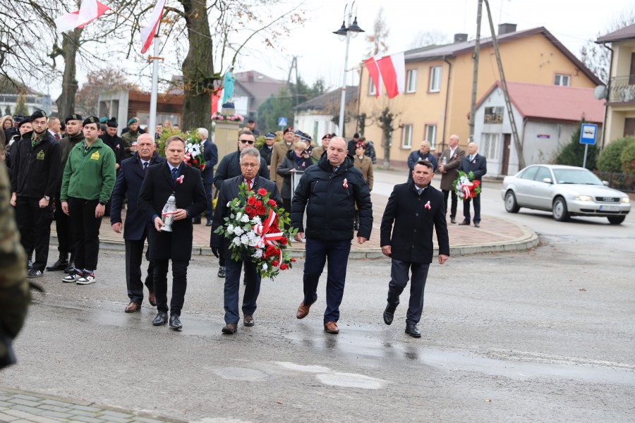 Pod pomnikiem Marszałka Józefa Piłsudskiego wiązanki kwiatów by oddać hołd tym, którzy działali na rzecz odrodzenia Polski złożyły delegacje składające się z przedstawicieli władz: wojewódzkich, samorządowych, placówek oświatowych, Zarządu Gminnego OSP, PSL, KGW, harcerzy, strzelców.