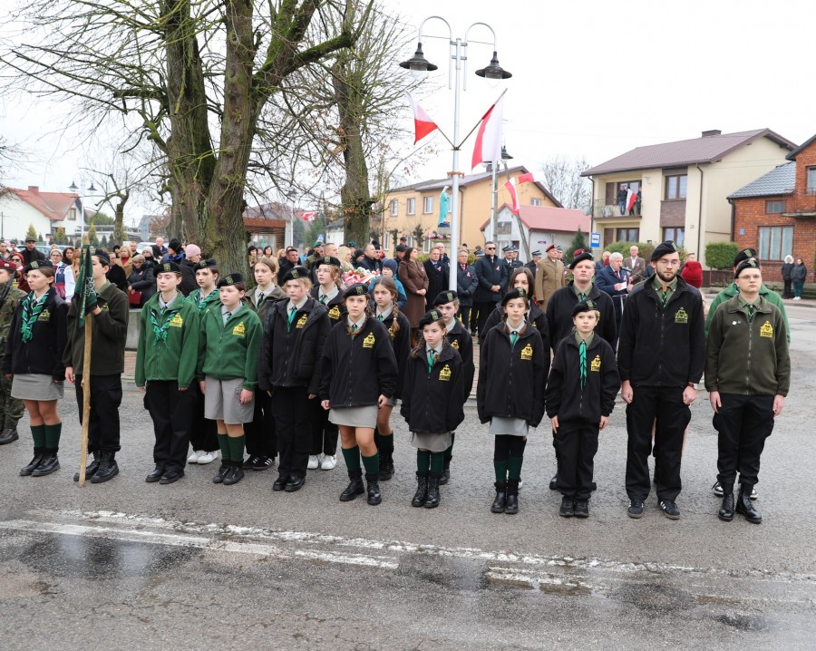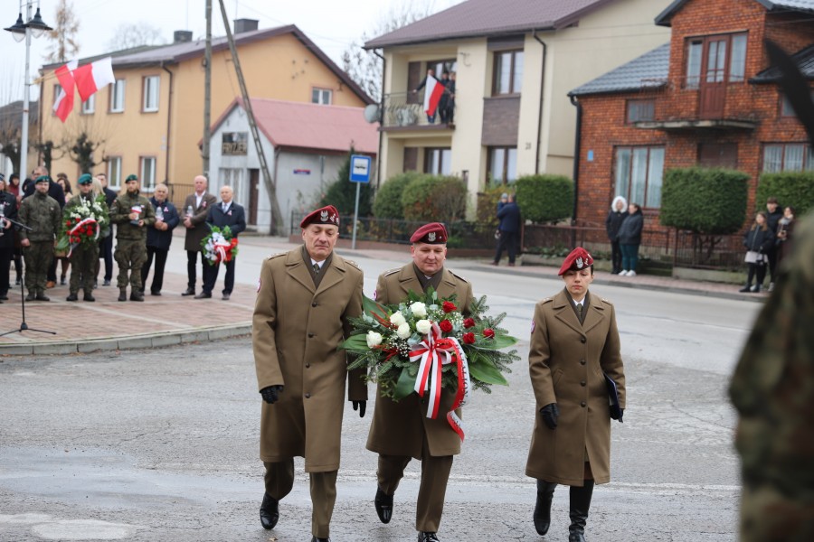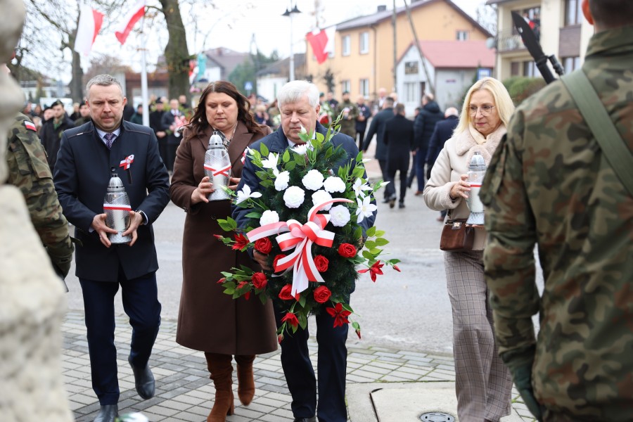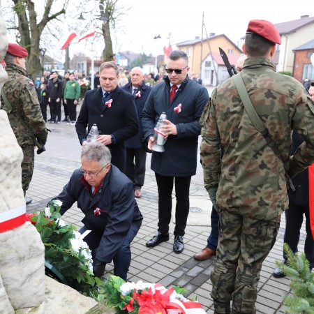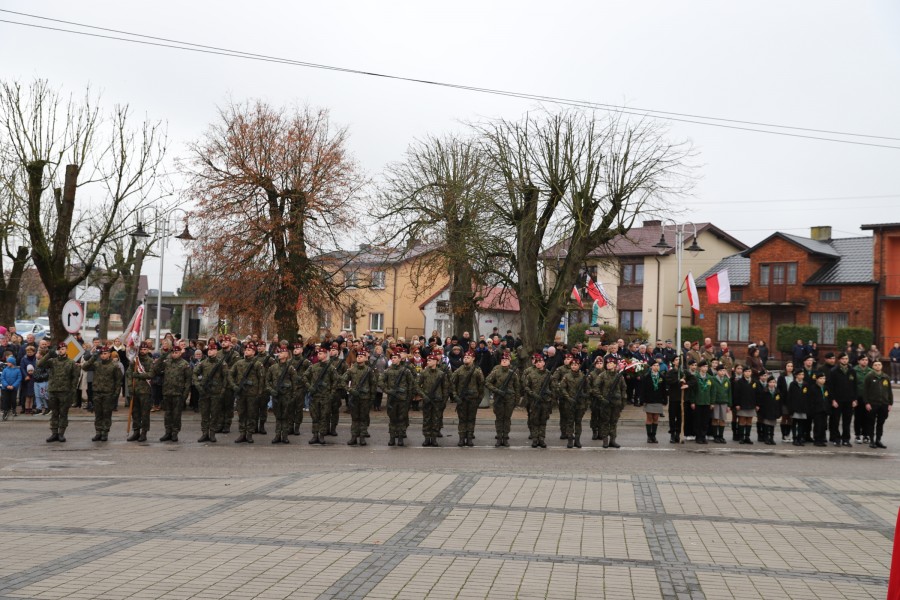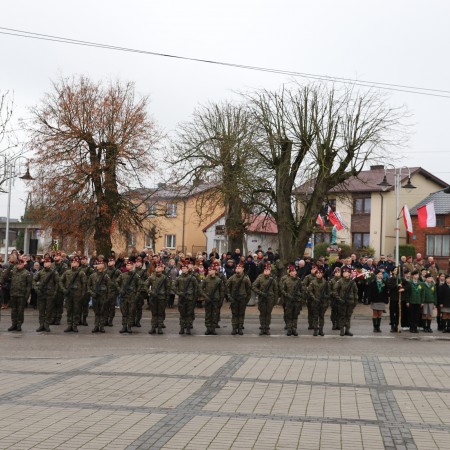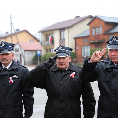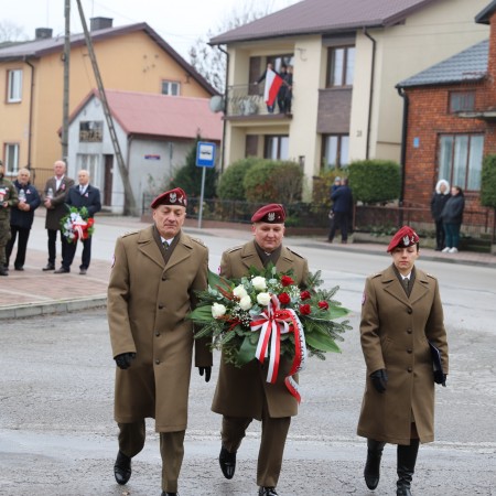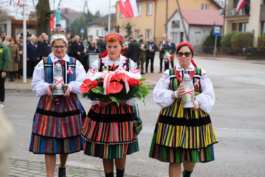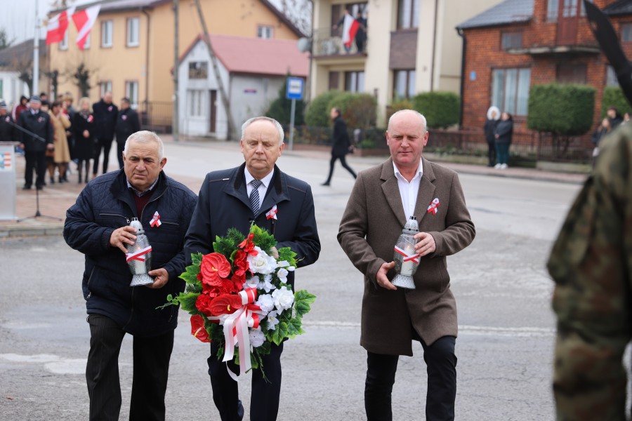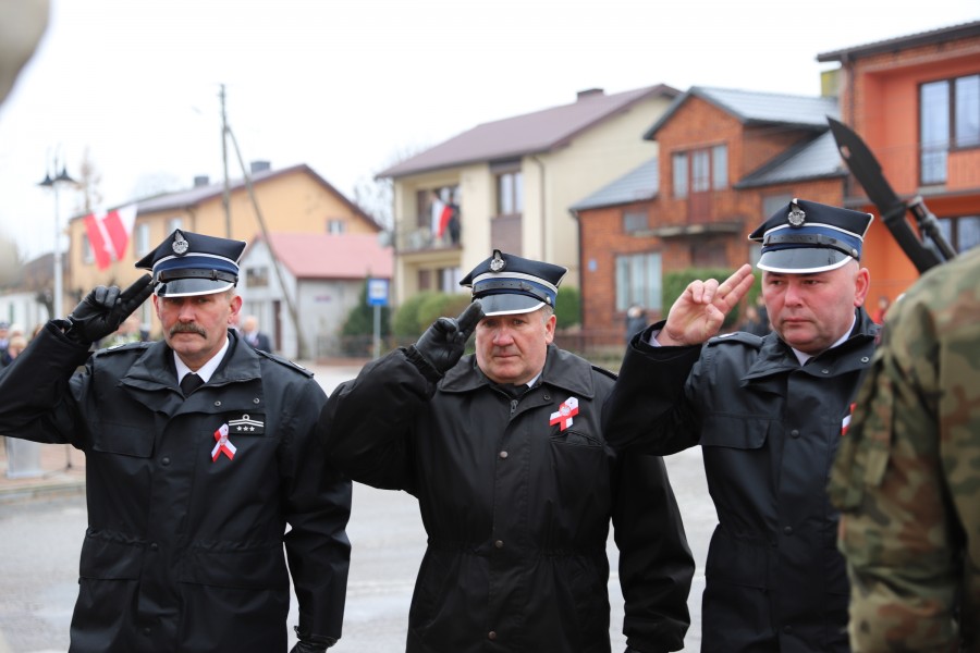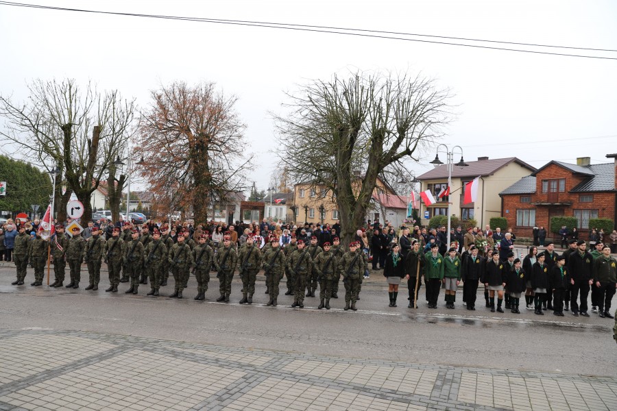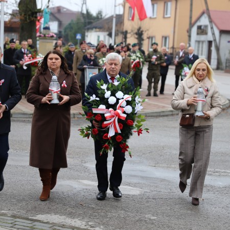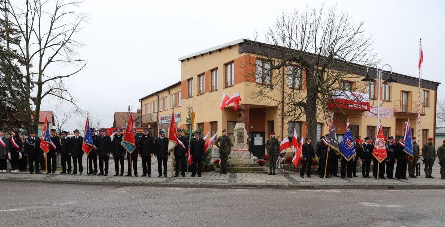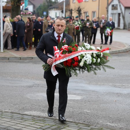 Pod pomnikiem Marszałka Józefa Piłsudskiego wiązanki kwiatów by oddać hołd tym, którzy działali na rzecz odrodzenia Polski złożyły delegacje składające się z przedstawicieli władz: wojewódzkich, samorządowych, placówek oświatowych, Zarządu Gminnego OSP, PSL, KGW, harcerzy, strzelców.
