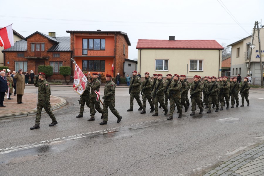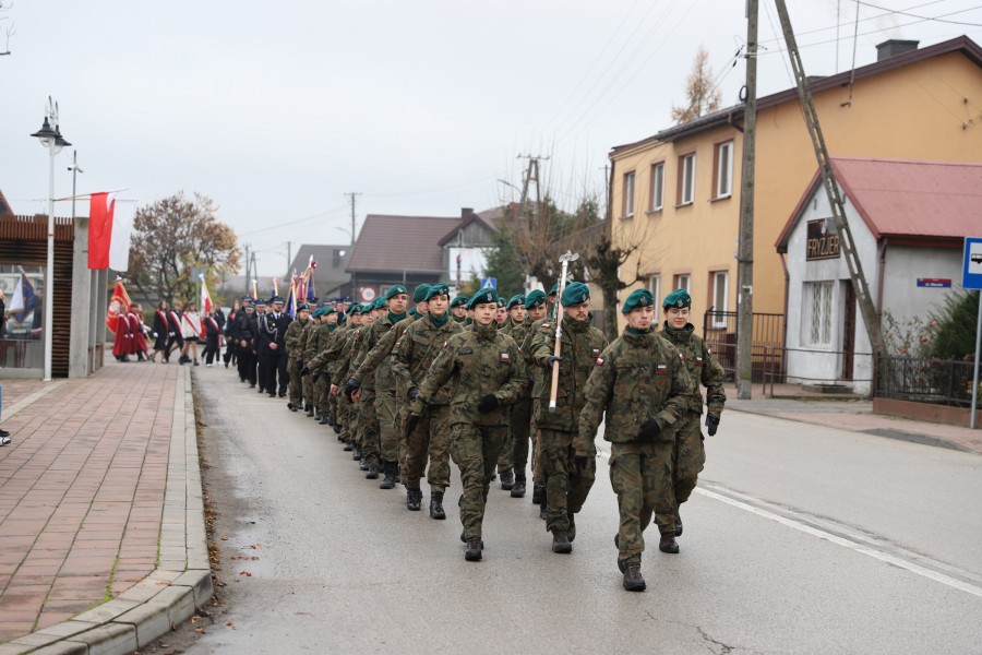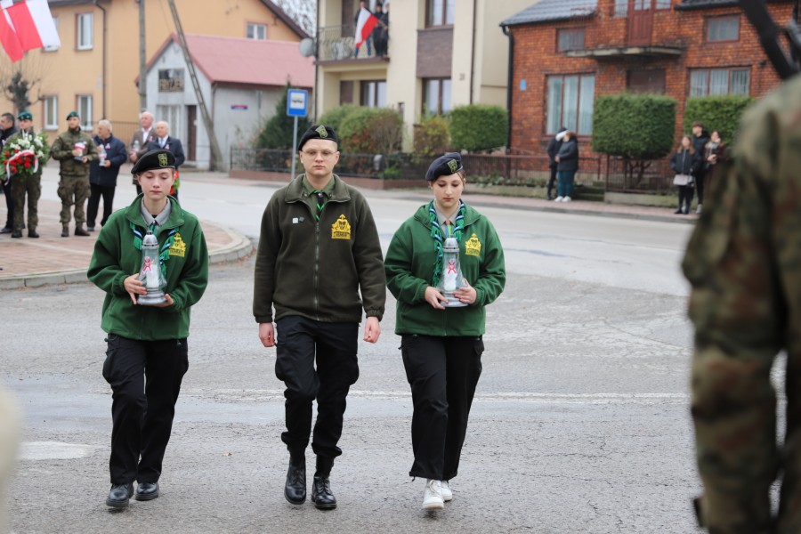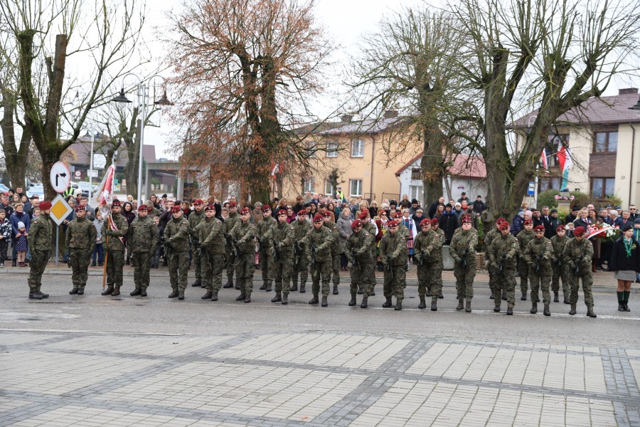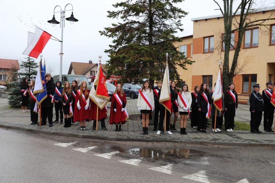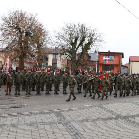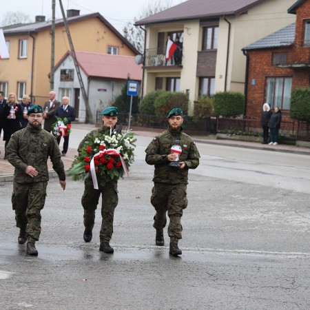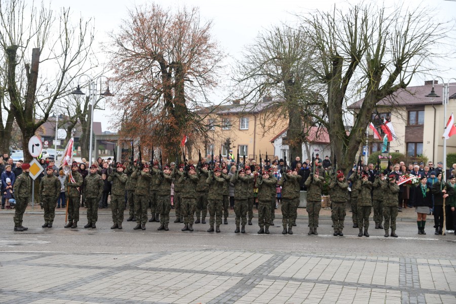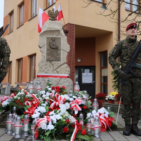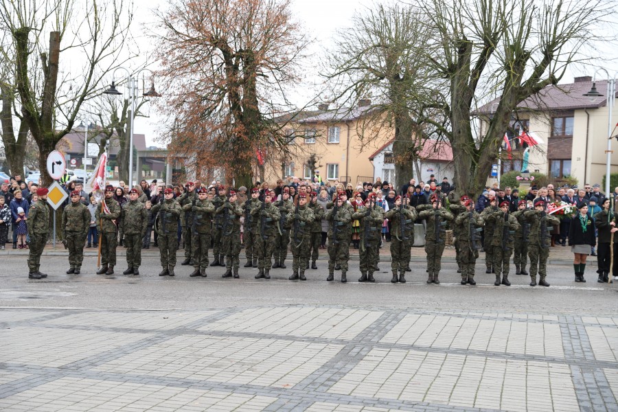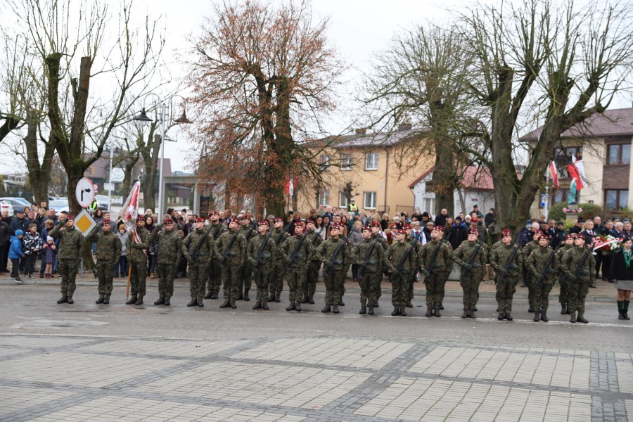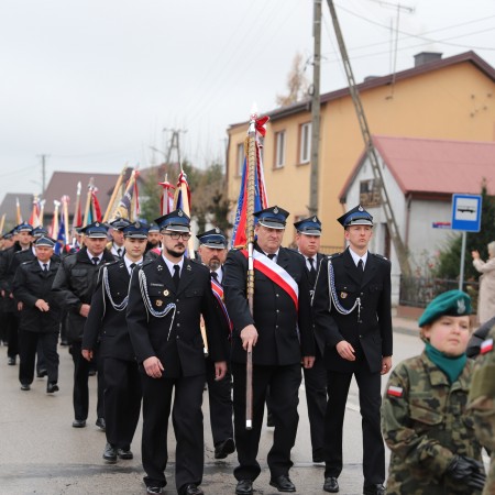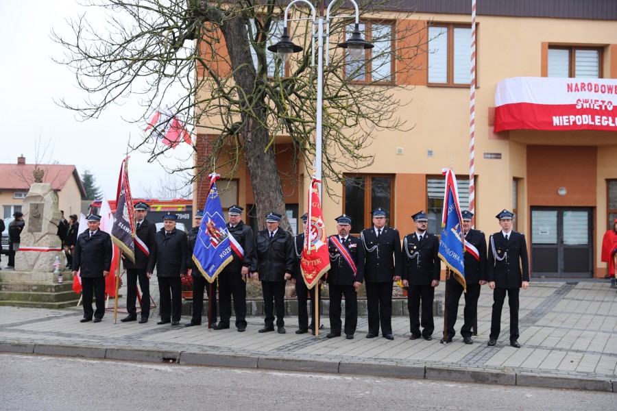 Pod pomnikiem Marszałka Józefa Piłsudskiego wiązanki kwiatów by oddać hołd tym, którzy działali na rzecz odrodzenia Polski złożyły delegacje składające się z przedstawicieli władz: wojewódzkich, samorządowych, placówek oświatowych, Zarządu Gminnego OSP, PSL, KGW, harcerzy, strzelców.