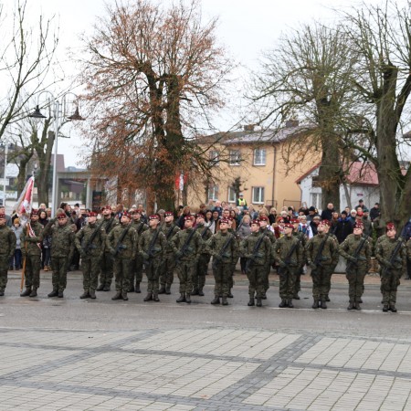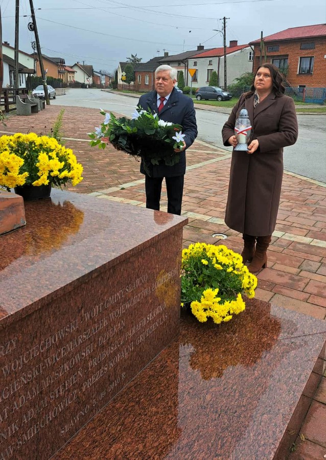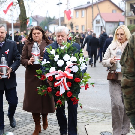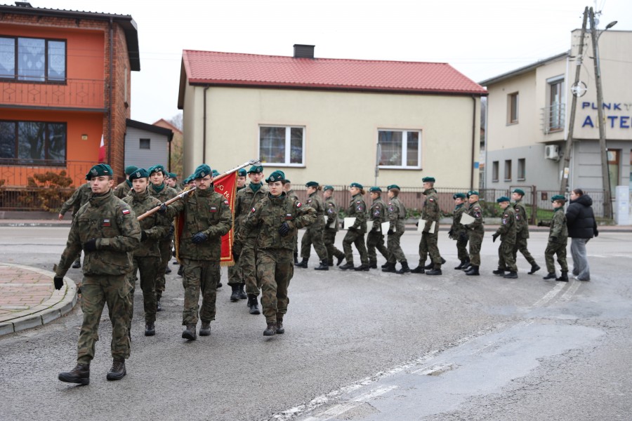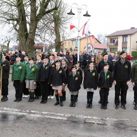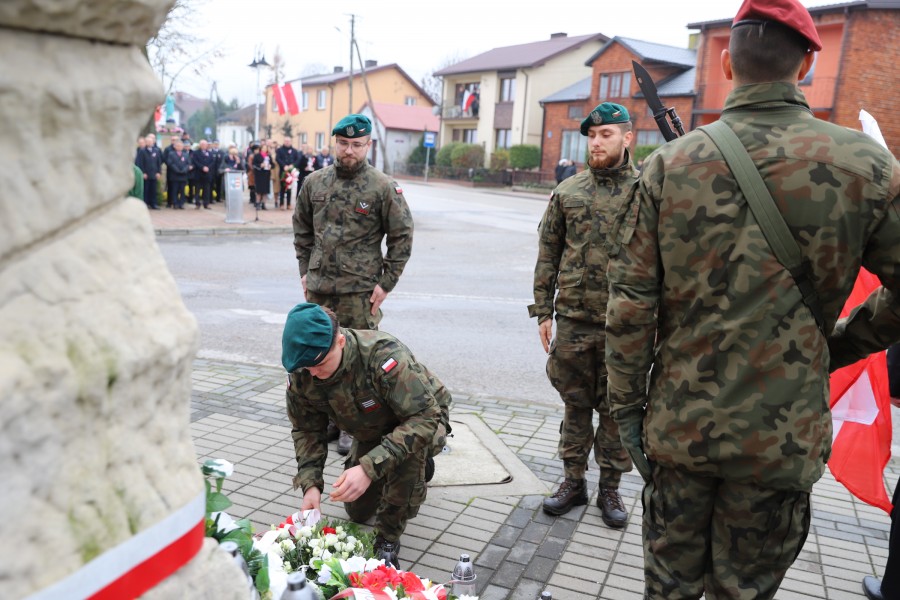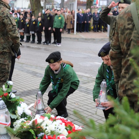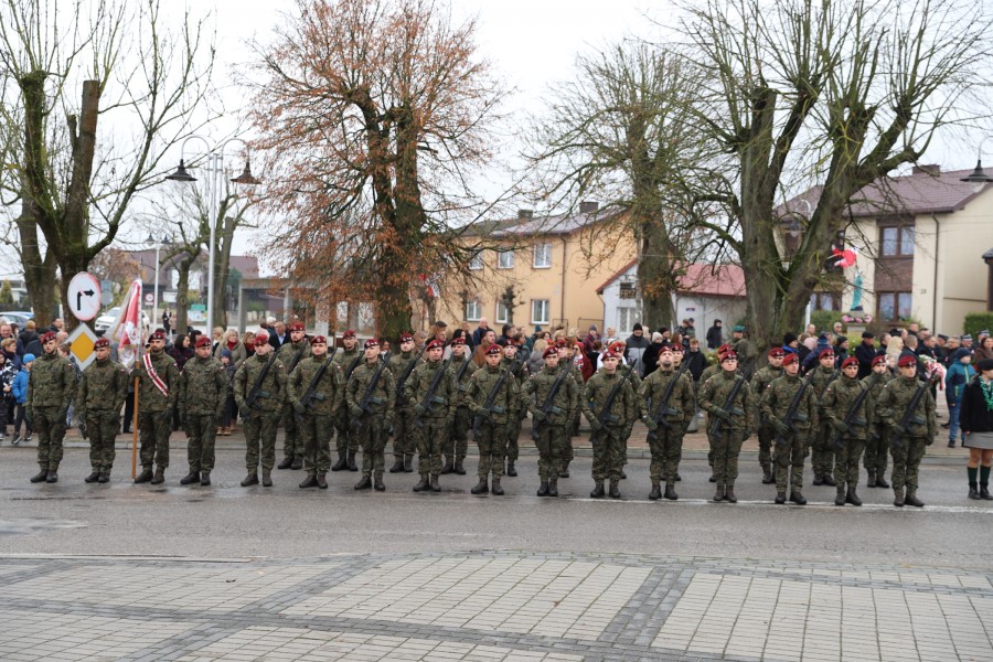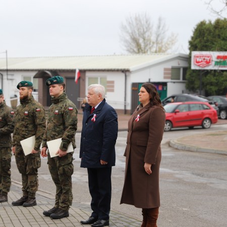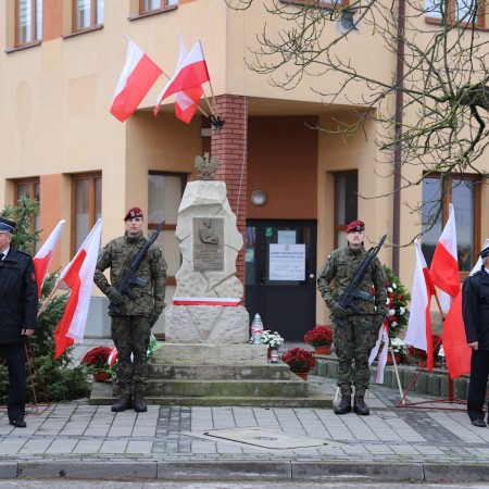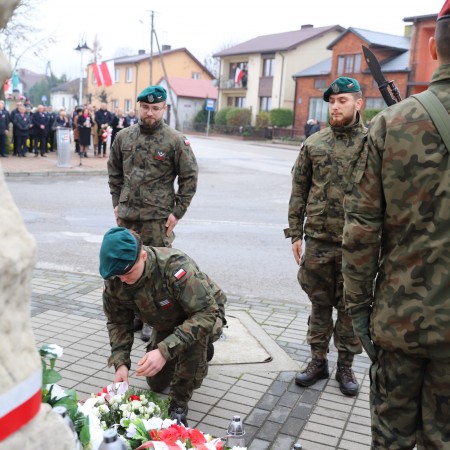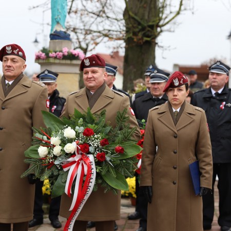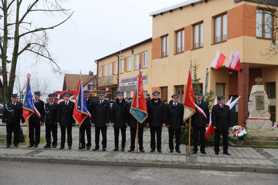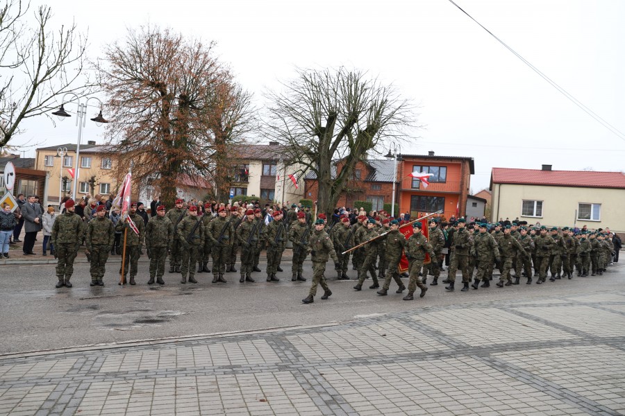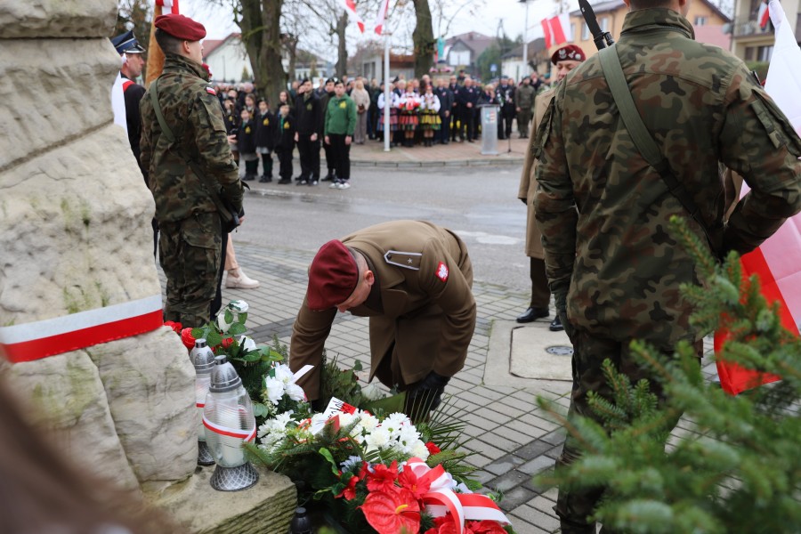 Pod pomnikiem Marszałka Józefa Piłsudskiego wiązanki kwiatów by oddać hołd tym, którzy działali na rzecz odrodzenia Polski złożyły delegacje składające się z przedstawicieli władz: wojewódzkich, samorządowych, placówek oświatowych, Zarządu Gminnego OSP, PSL, KGW, harcerzy, strzelców.