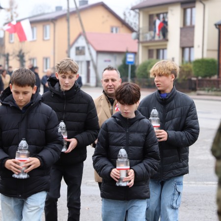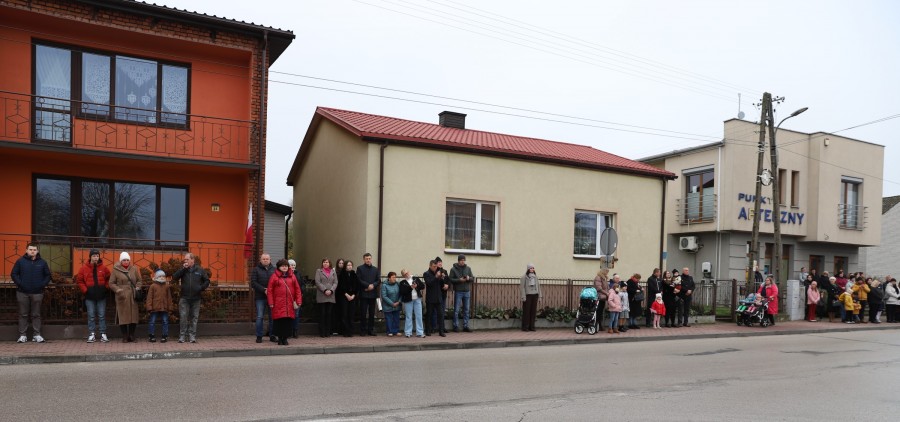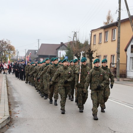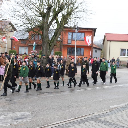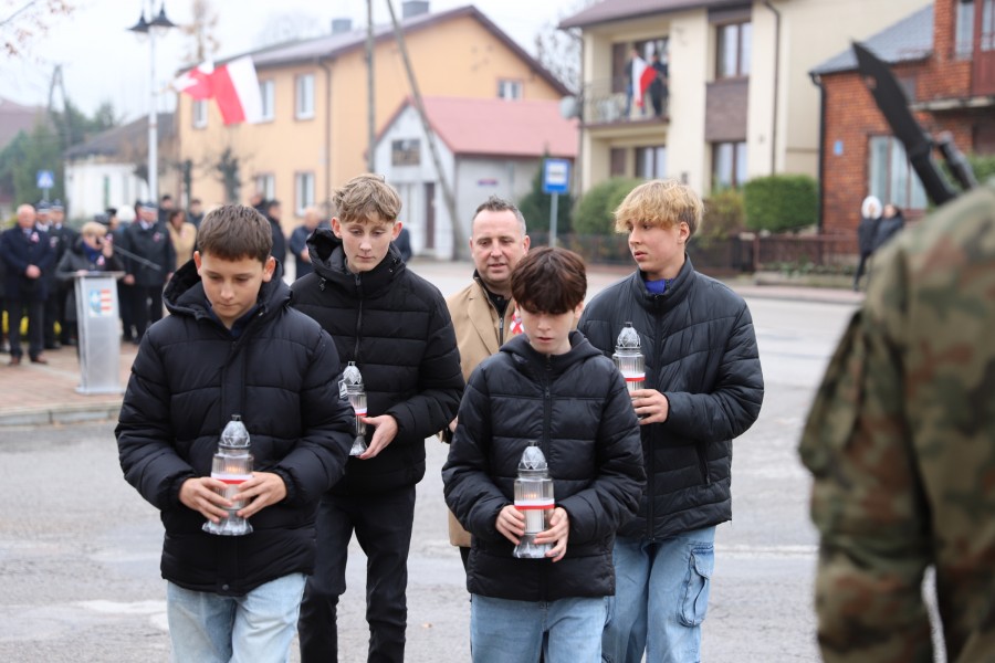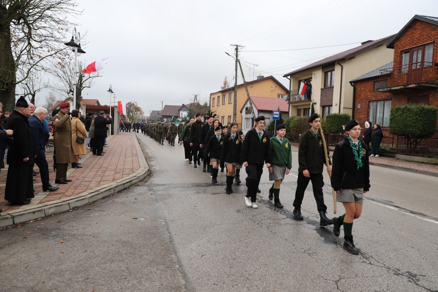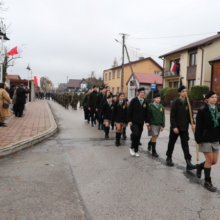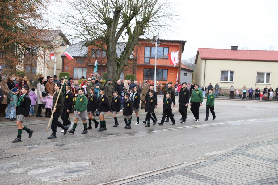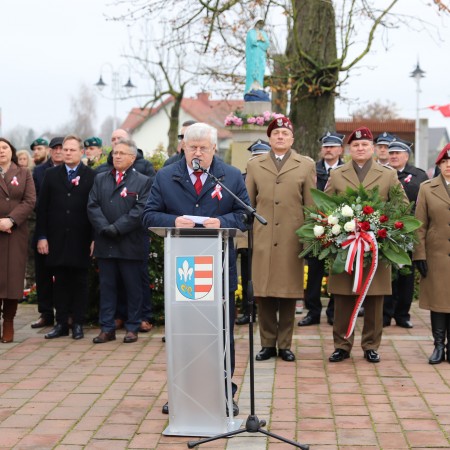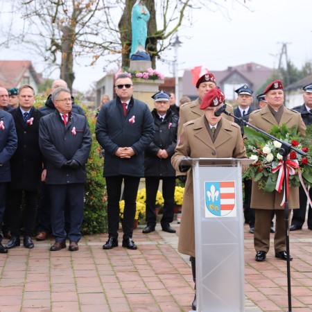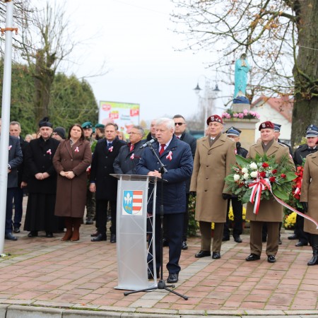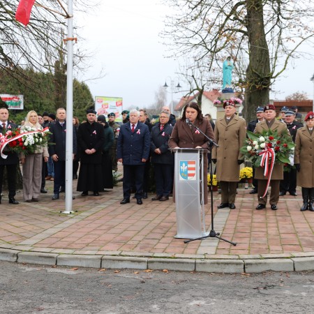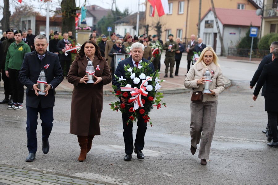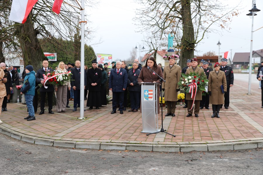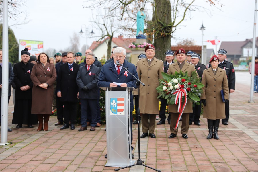 Wójt Gminy Tadeusz Wojciechowski wygłosił przemówienie okolicznościowe nawiązując do wydarzeń sprzed 107 lat, gdy po 123 latach niewoli, Rzeczpospolita znów pojawiła się na mapach Europy spełniając marzenia Polaków urodzonych i wychowanych pod zaborami.