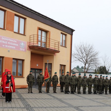 Poczty Sztandarowe Jednostek Ochotniczych Straży Pożarnych i szkół z terenu gminy Sławno,